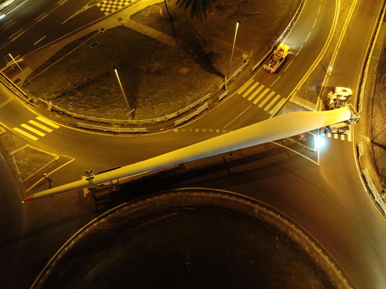En cas de déconnexion au réseau, ce qui est fréquent lors de cyclones, un générateur électrique s’active : l’éolienne peut rester alimentée et continuer à orienter ses pales et sa nacelle. Elle réduit ainsi ses charges mécaniques et peut résister aux vents violent. D’une hauteur de 123m en bout de pâle, ces éoliennes non rabattables sont les premières à être installées dans les Antilles françaises !